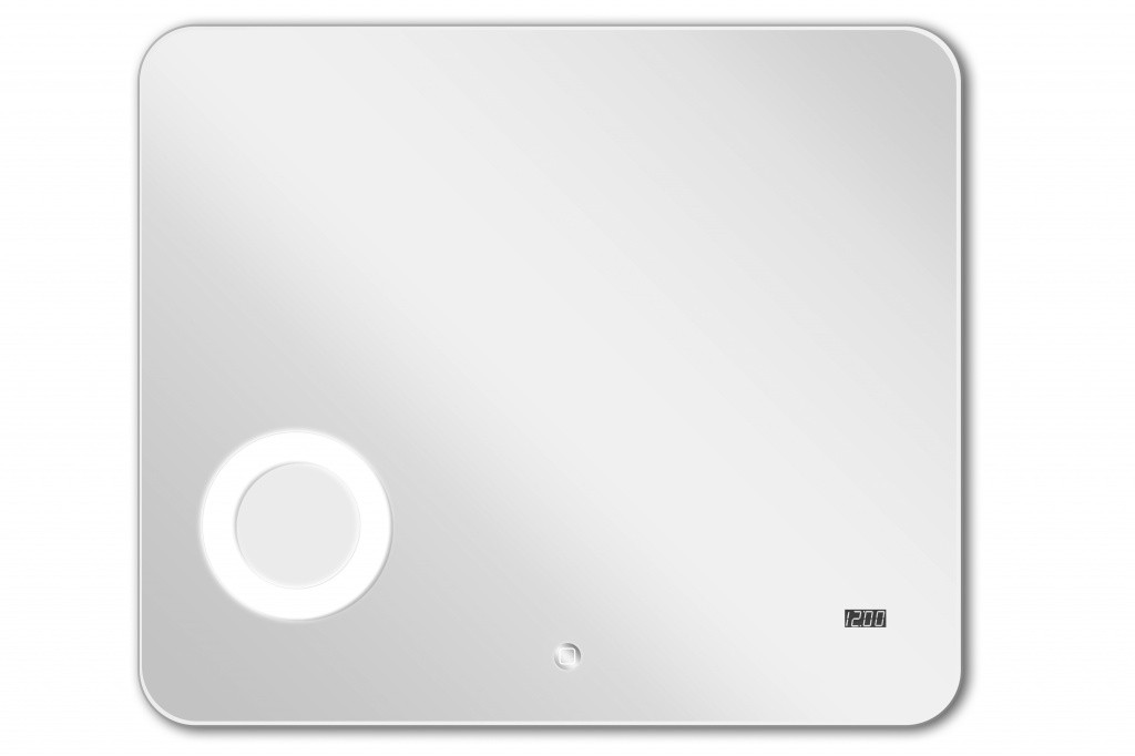 В изделие встроено дополнительное увеличительное косметическое зеркало, электронные часы и сенсорный выключатель, выполненном в модном и узнаваемом стиле. Увеличительное косметическое зеркало встроено за зеркальным полотном. Это очень удобно в процессе эксплуатации и выглядит более эстетично, чем стандартное решение похожих зеркал, когда увеличительное зеркало, - просто наклеено на основное.