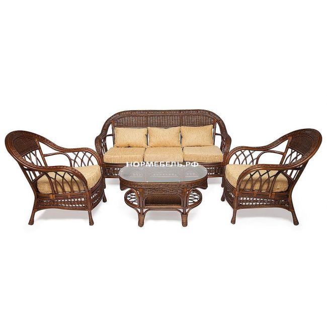 Комплект мебели <<Миш-ель>>, изготовленный из натурального ротанга, отличное решение для летних веранд, террас и садовых площадок различного стилевого решения.