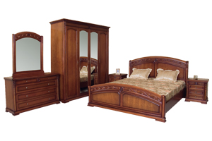 С05. Шкаф 4-х дверный с зеркалом "Валенсия" "WARDROBE WITH MIRROR" (210*65*220) Цвет Z01 (вишня)