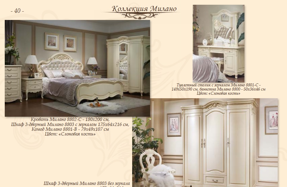 Спальня Милано8802-С (кр. 8802С ЭК, 2 тумб. 8801В, туал. ст. с зерк. 8801А, банк ЭКОКОЖА 8800)